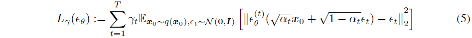DDPM 논문에 있는 식과 살짝 다르다는 걸 확인할 수 있는데, 수식 전개의 편의성을 위해 DDPM 논문의 $\overline{\alpha}_t$를 본 논문에서는 $\alpha_t$로 표현하고 있다.